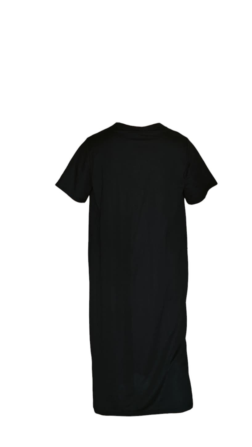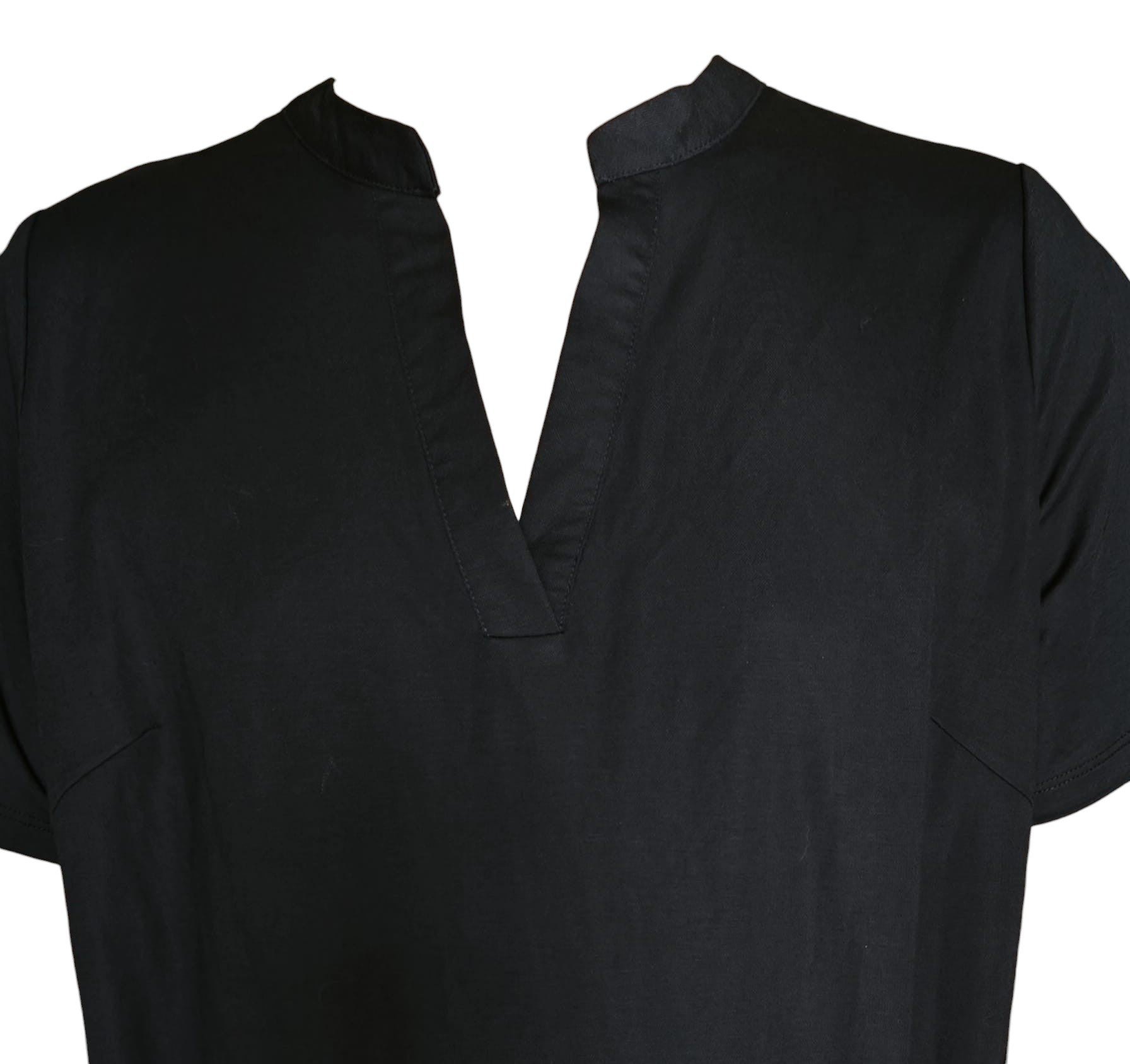 Elegante vestido de corte clásico, color azul oscuro, mangas cortas, corte en V, con lazo en la cintura decorativo, suave al tacto, ideal para ceremonias, eventos.